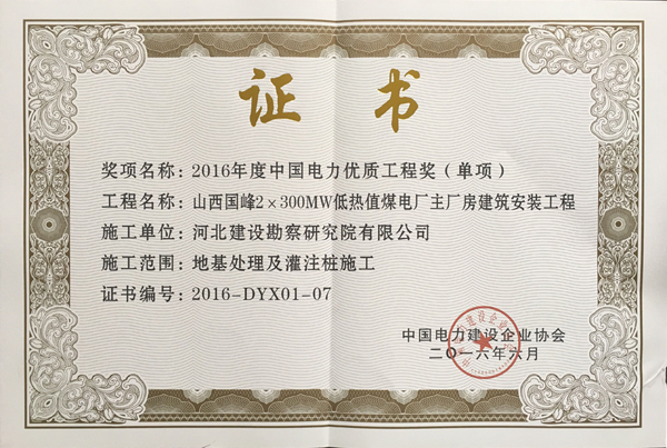 近日,我公司承建的山西國峰2x300MW低熱值煤綜合利用電廠項目獲得2016年度中國電力優(yōu)質(zhì)工程獎。公司領(lǐng)導(dǎo)早在項目施工期間就高度關(guān)注此項目的評優(yōu)工作,對工程施工質(zhì)量、工程資料整理要求極為嚴格,項目施工結(jié)束后,積極配合中國電力建設(shè)企業(yè)協(xié)會完成工程獎申報資料預(yù)審、現(xiàn)場復(fù)查等各項程序,最終入選中國電力優(yōu)質(zhì)工程獎。