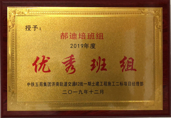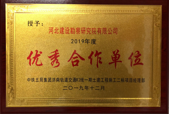 由我公司承接的濟南市軌道交通R2線施工監測項目,近日收到中鐵五局集團濟南地鐵項目部的表揚信,并授予我公司“2019年度優秀合作單位”、郝迪培班組“2019年度優秀班組”兩項榮譽獎牌。