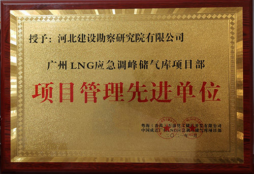 近日,由我公司承建的廣州LNG應急調峰儲氣庫項目樁基工程,榮獲粵海番禺石油化工儲運有限公司以及中國成達廣州LNG應急調峰儲氣庫項目部聯合頒發的“項目管理先進單位”的榮譽獎牌。
