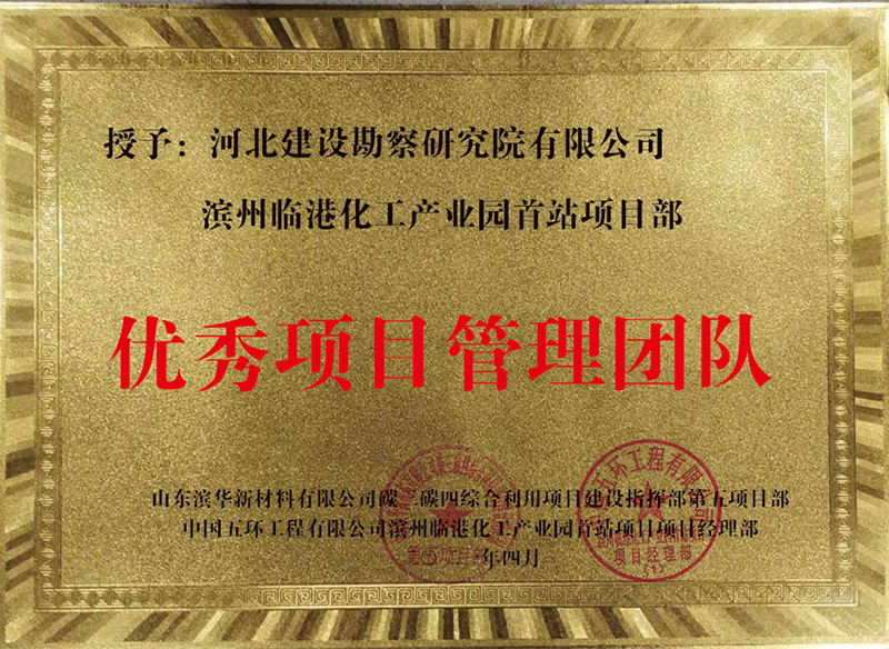 在表彰會上,山東濱華新材料有限公司項目部、中國五環工程有限公司項目部有關領導,對于我項目部的工作表現予以充分肯定和高度贊揚,并授予我公司項目部“優秀項目管理團隊”、呂琳同志“優秀項目經理”、宋燁“優秀項目總工”、李宗剛“優秀施工經理”、丁月林“優秀HSE經理”、楊振林、陳珂瓏、張成良“優秀質量員”榮譽稱號。