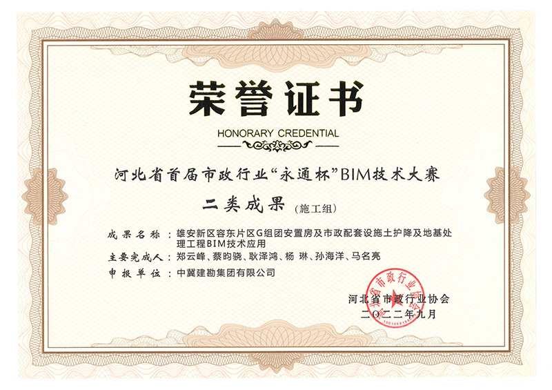 近日,我公司組織參加了由河北省市政行業協會舉辦的河北省首屆市政行業“永通杯”BIM技術大賽。經過激烈的資格預審、成果初評、技術答辯及終審公示等程序,“雄安新區容東片區G組團安置房及市政配套設施土護降及地基處理工程BIM技術應用”項目榮獲施工組二類成果,“河北科技產業綜合樓”項目榮獲施工組三類成果。