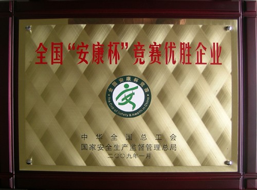 公司榮獲2008年度全國“安康杯”競賽活動優勝單位榮譽稱號