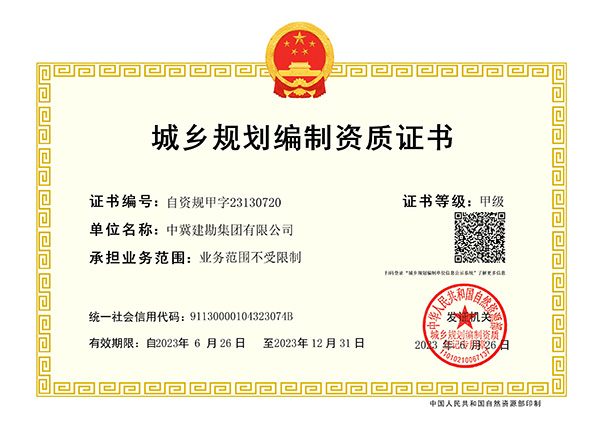 集團(tuán)公司喜獲城鄉(xiāng)規(guī)劃編制甲級(jí)資質(zhì)證書