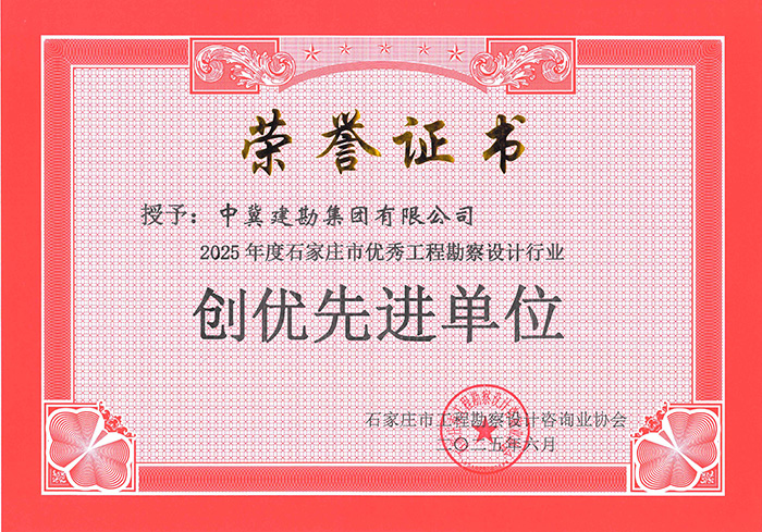 近日,石家莊市工程勘察設計咨詢業協會下發文件《關于公布2025年度石家莊市優秀工程勘察設計行業獎評選結果的通知》(石設協字[2025]9號),集團公司申報的28個項目:獲評一等獎9個,二等獎13個,三等獎6個;同時集團公司被授予“創優先進單位”榮譽稱號。